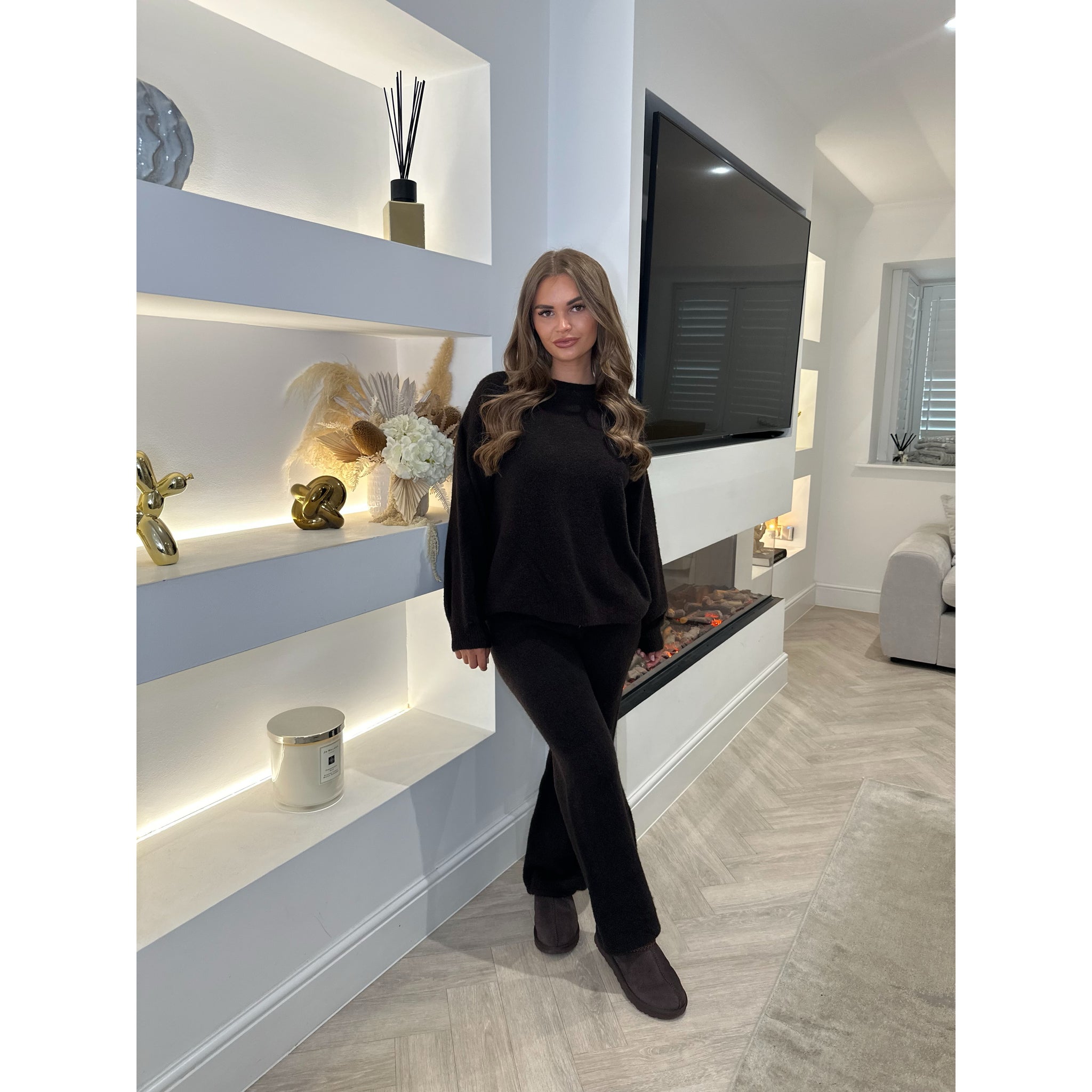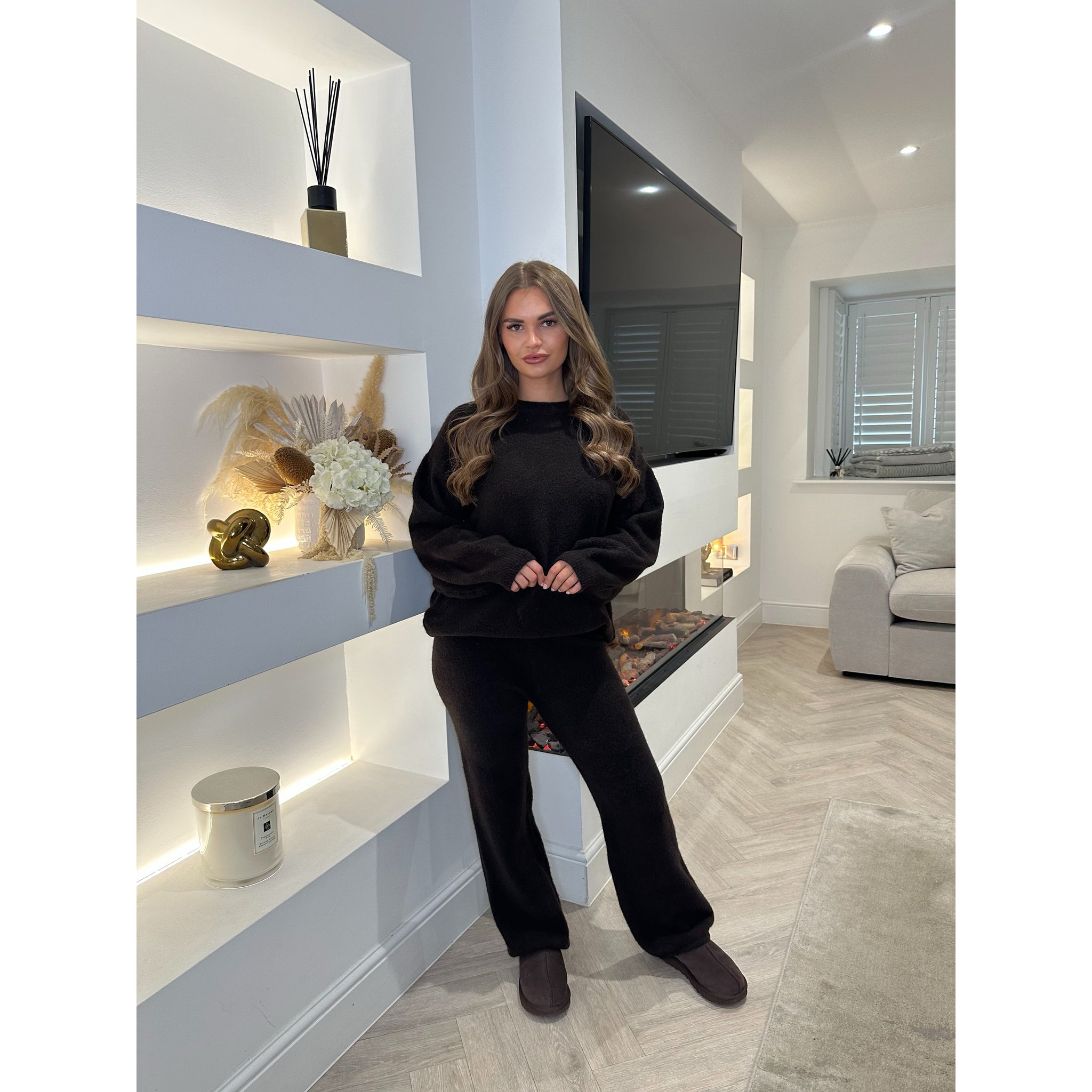 Chocolate Brown Wool Blend Sweatshirt Lounge Co Ord