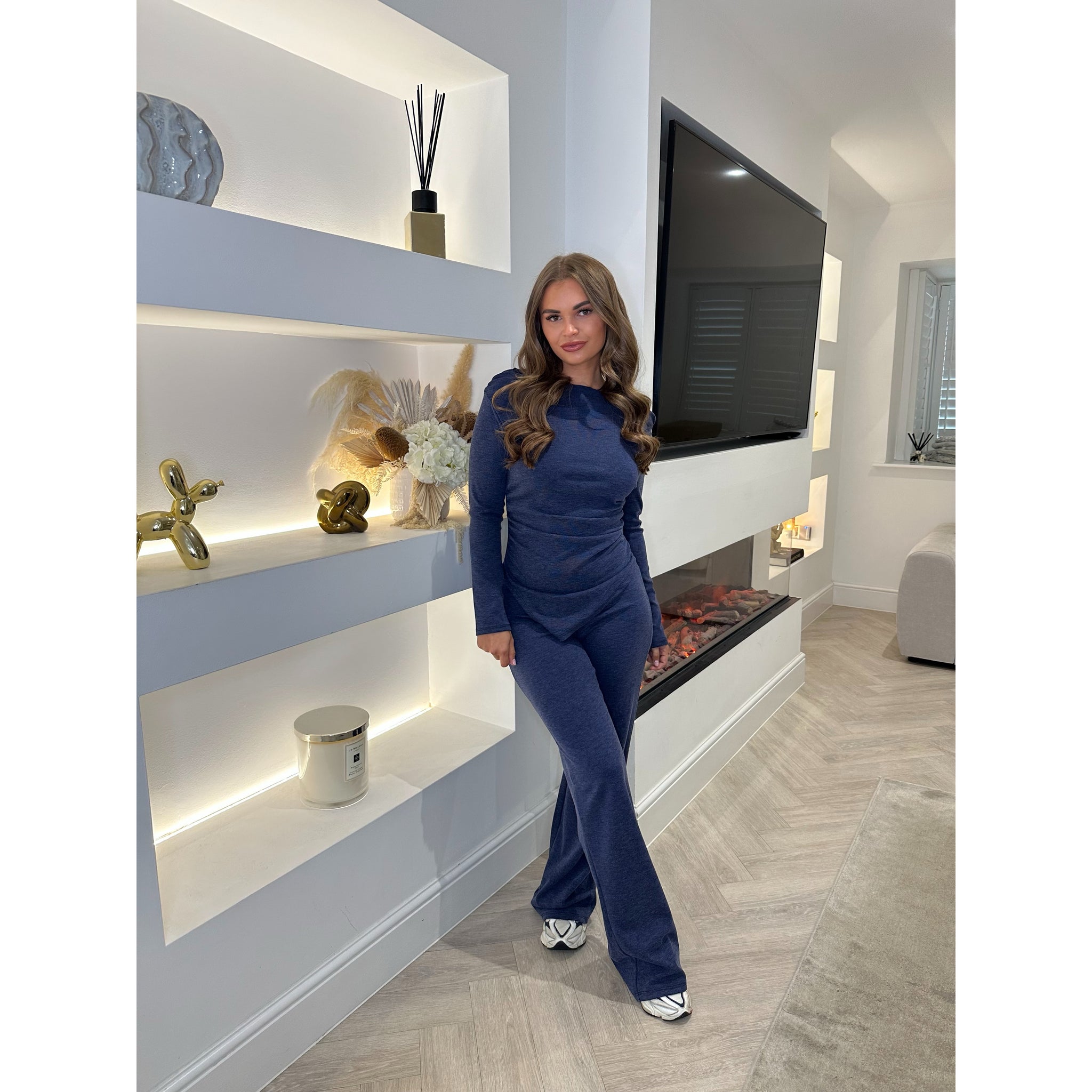Denim Blue Ruched Asymmetric Lounge Set