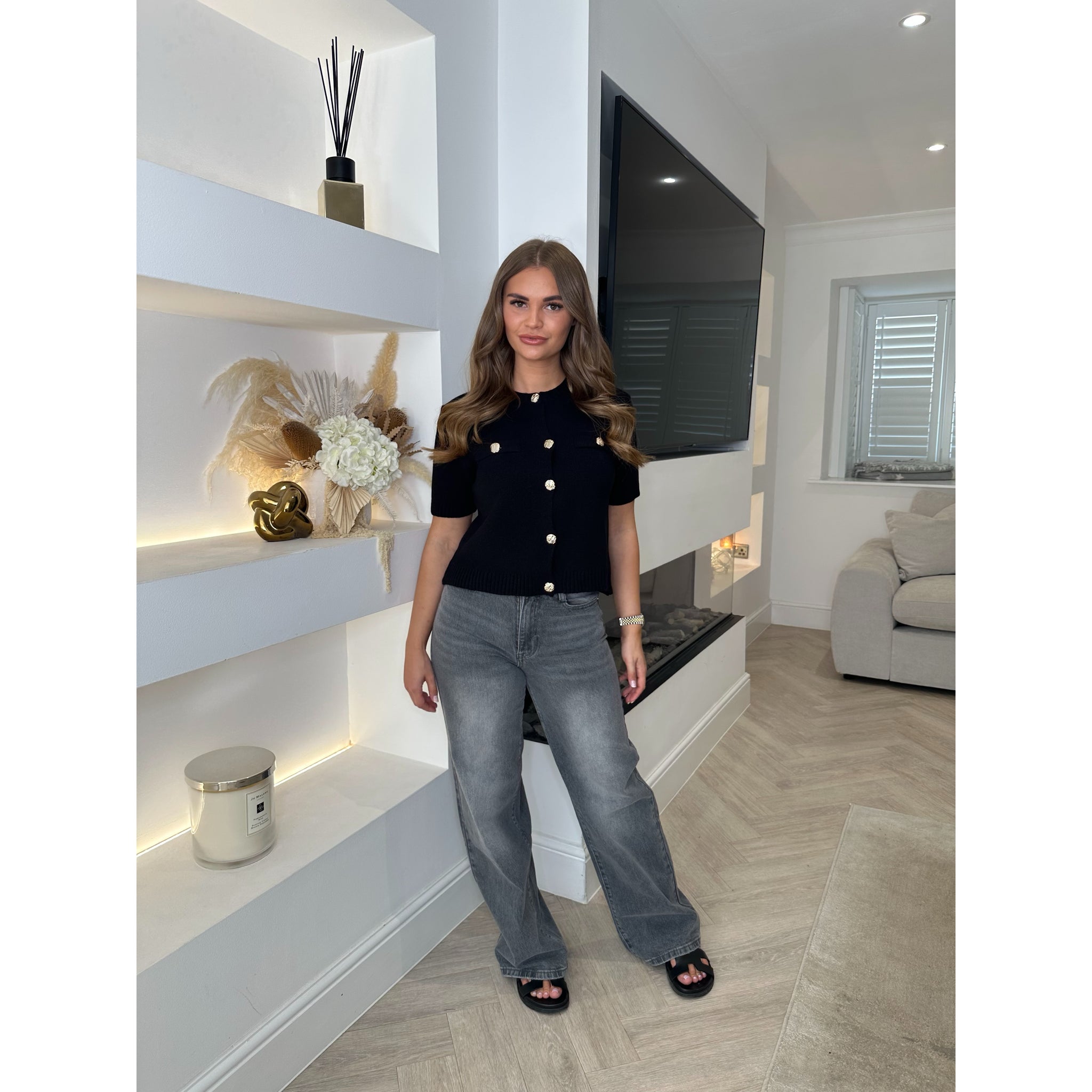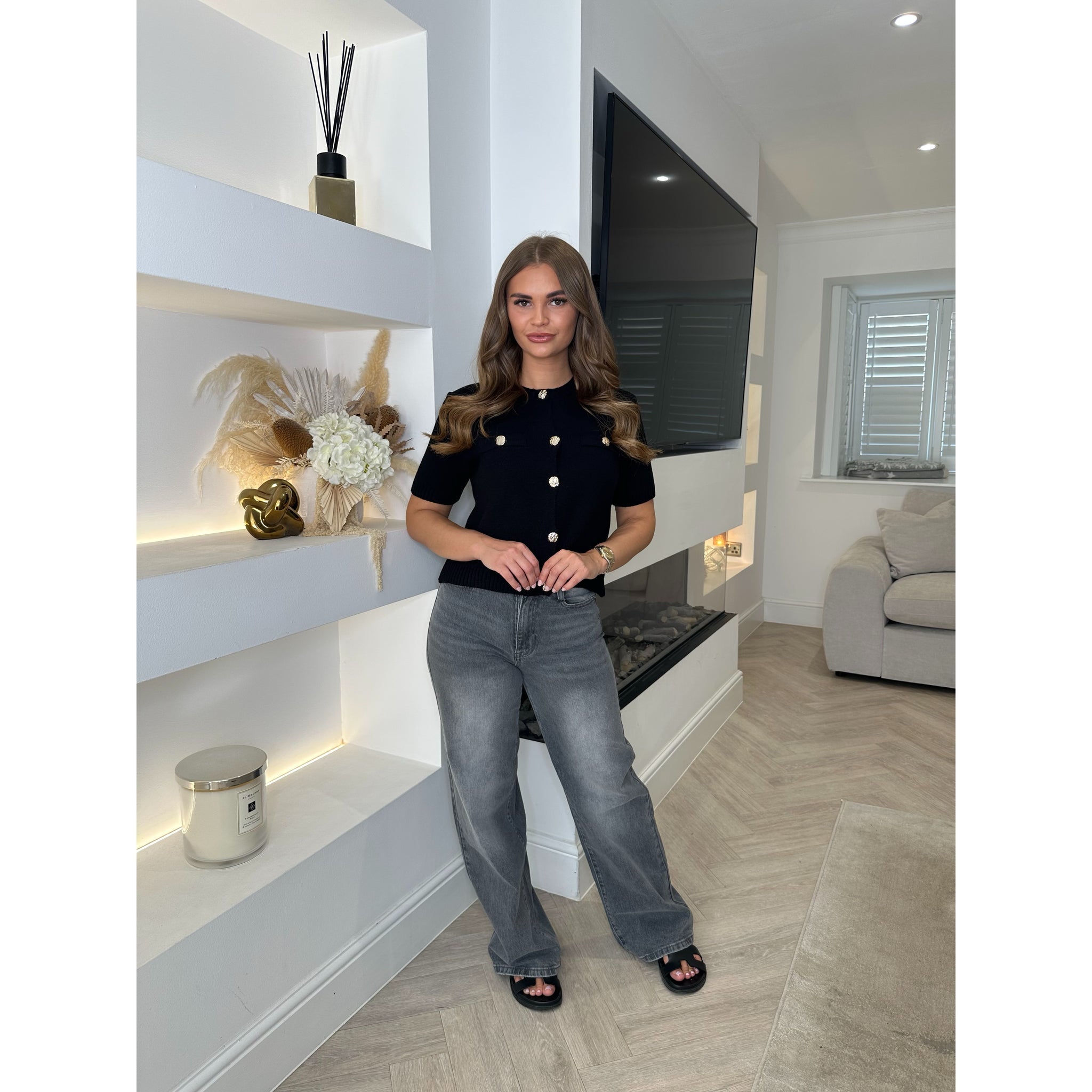 Gold button detail, buttons are functional so can be worn open as a cardigan too
