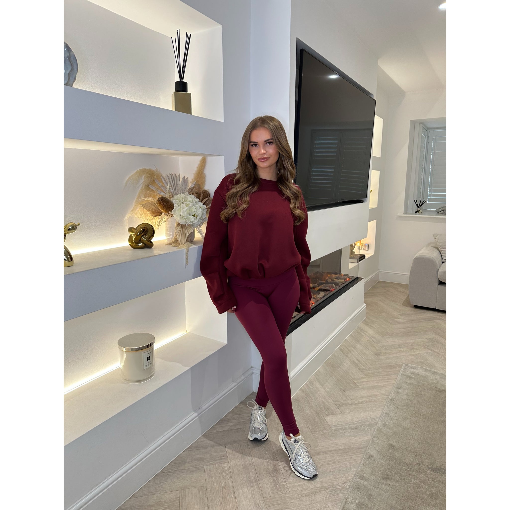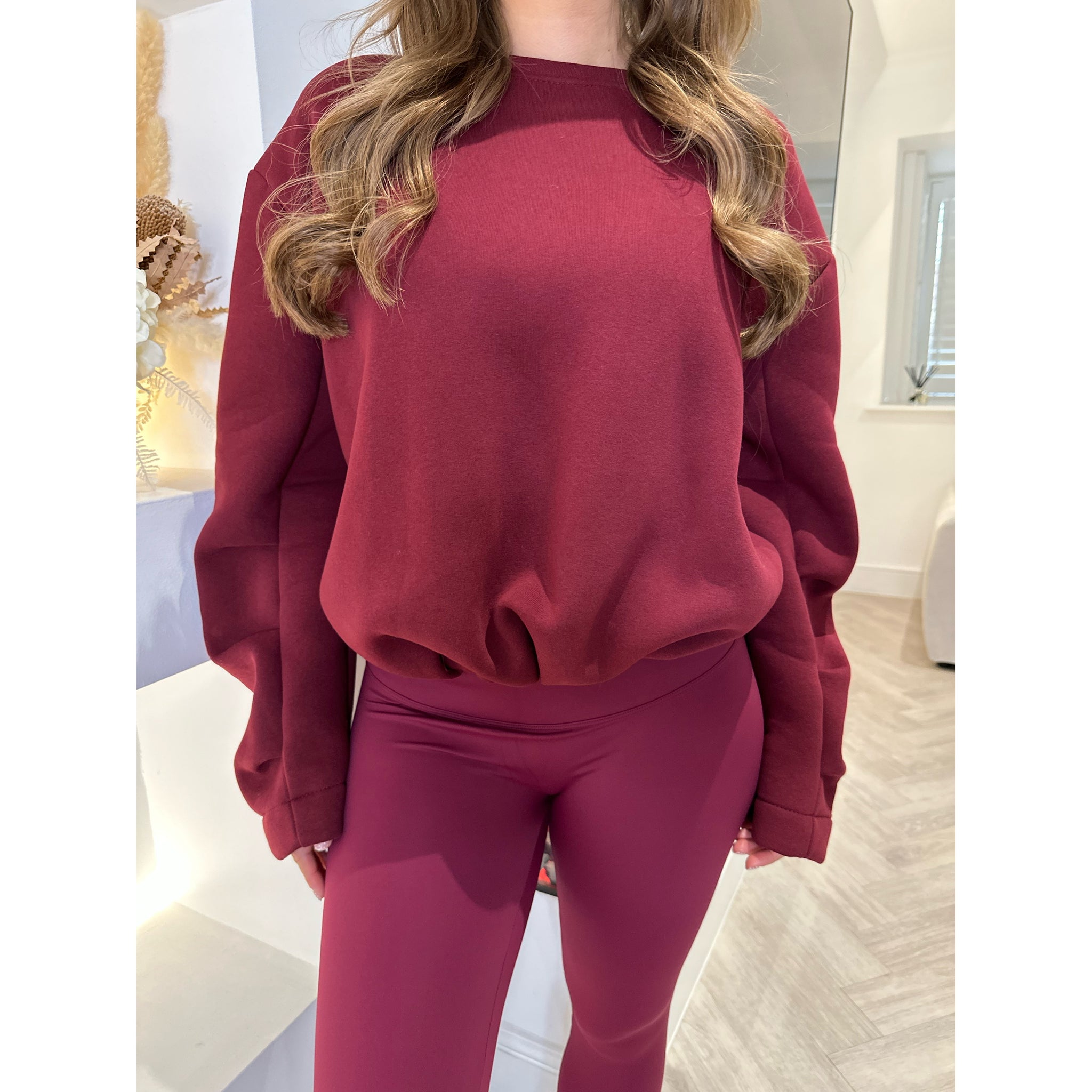 Burgundy Elasticated Hem Fleece Lined Jumper