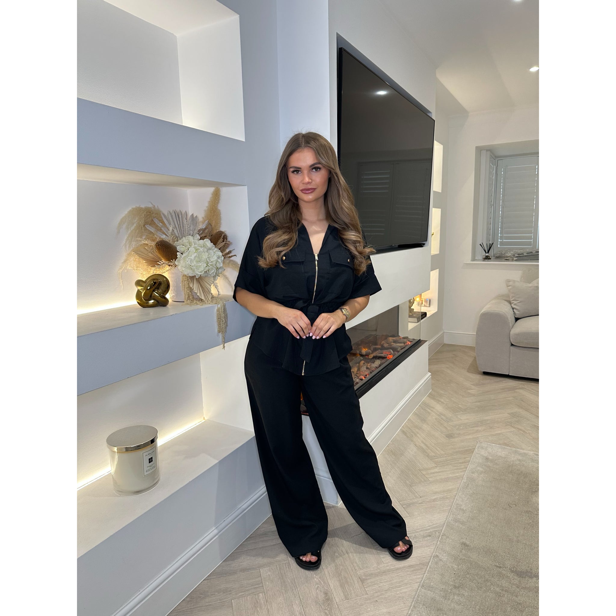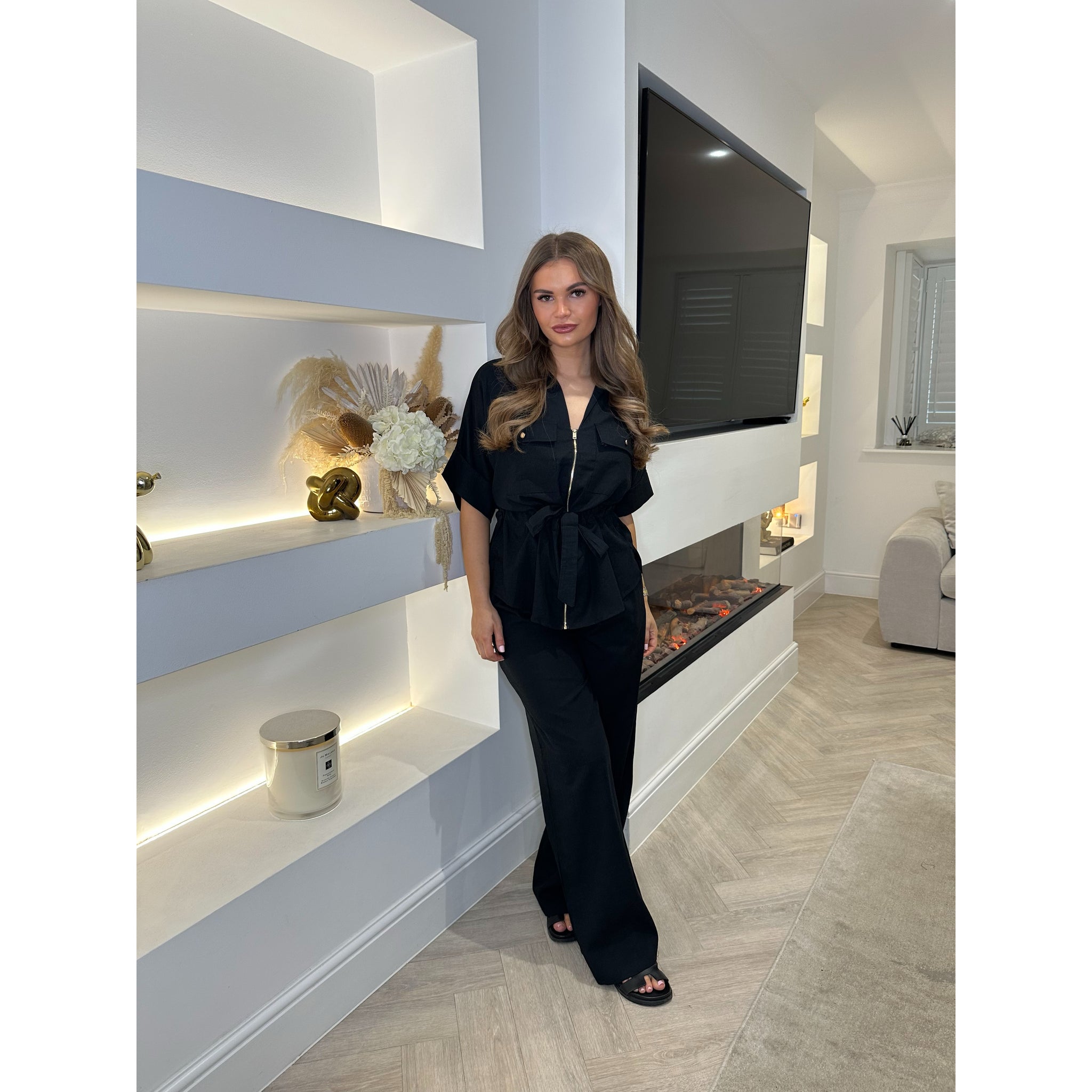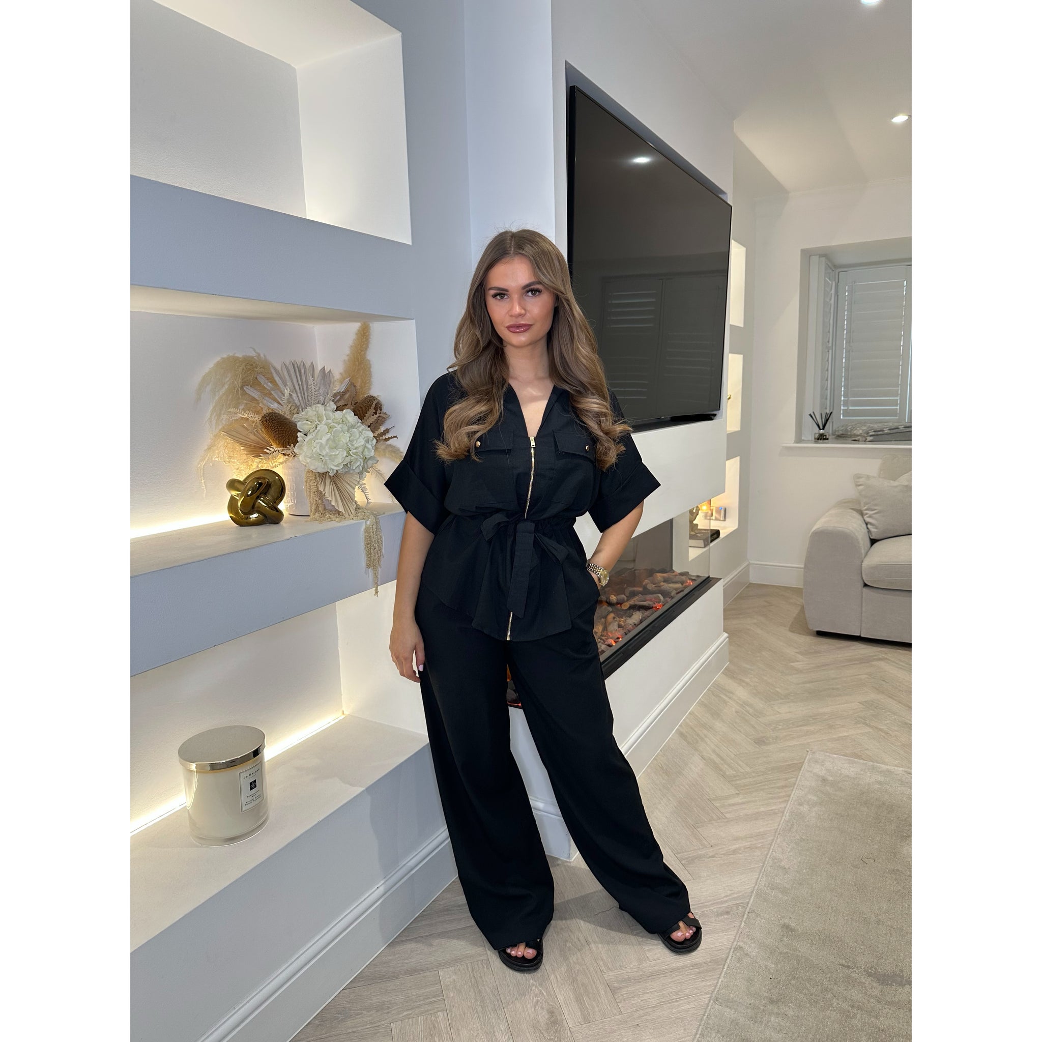 The model is a size 8 & 5 foot 3, wearing size Small for reference