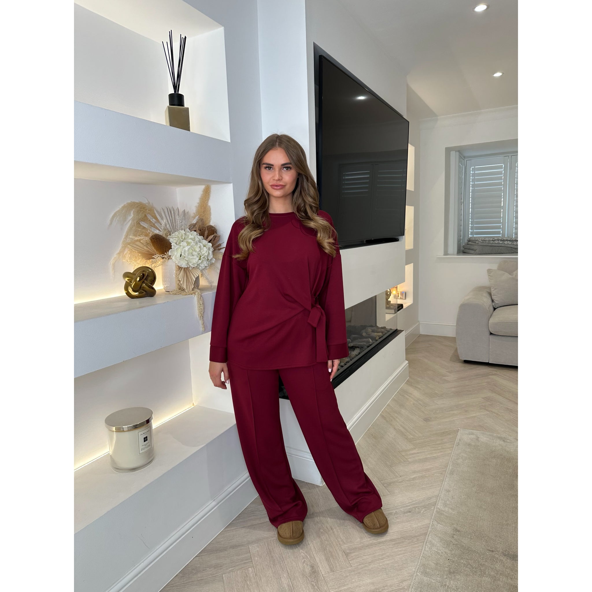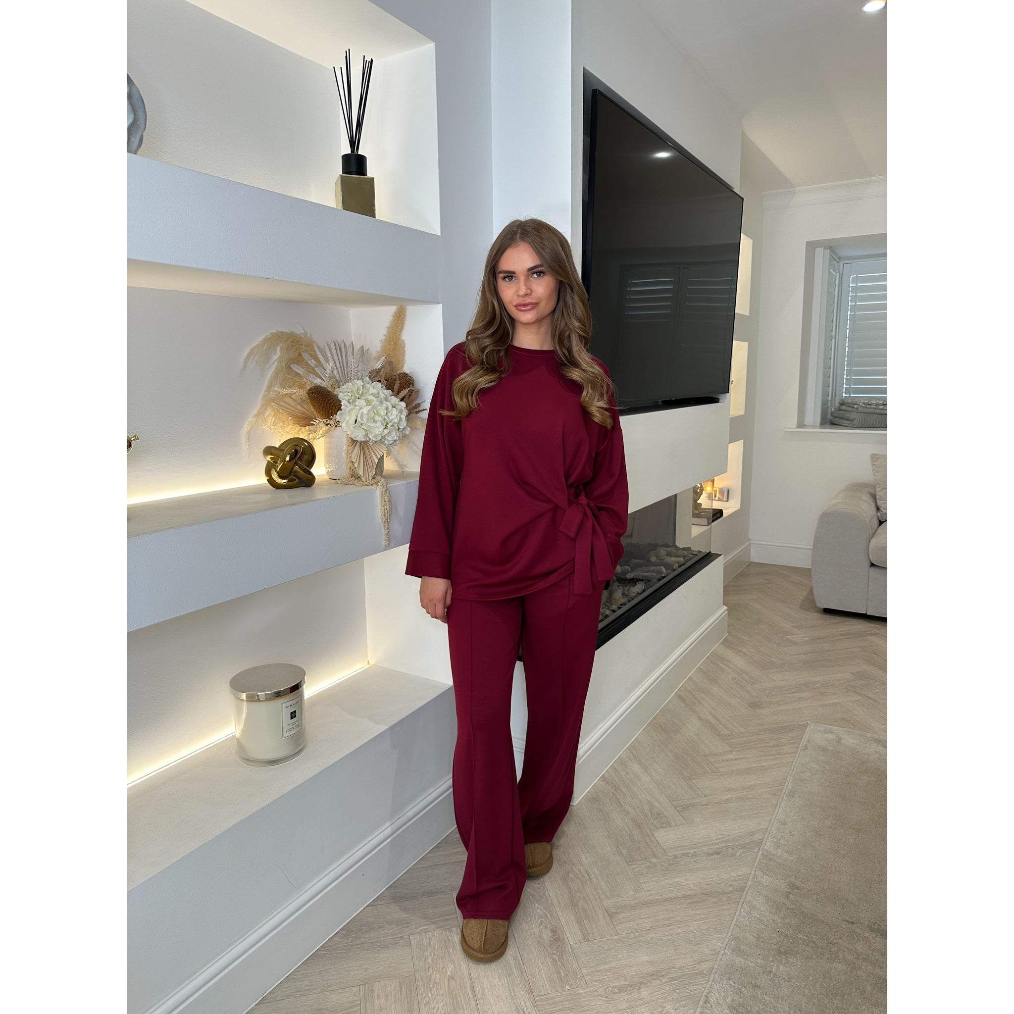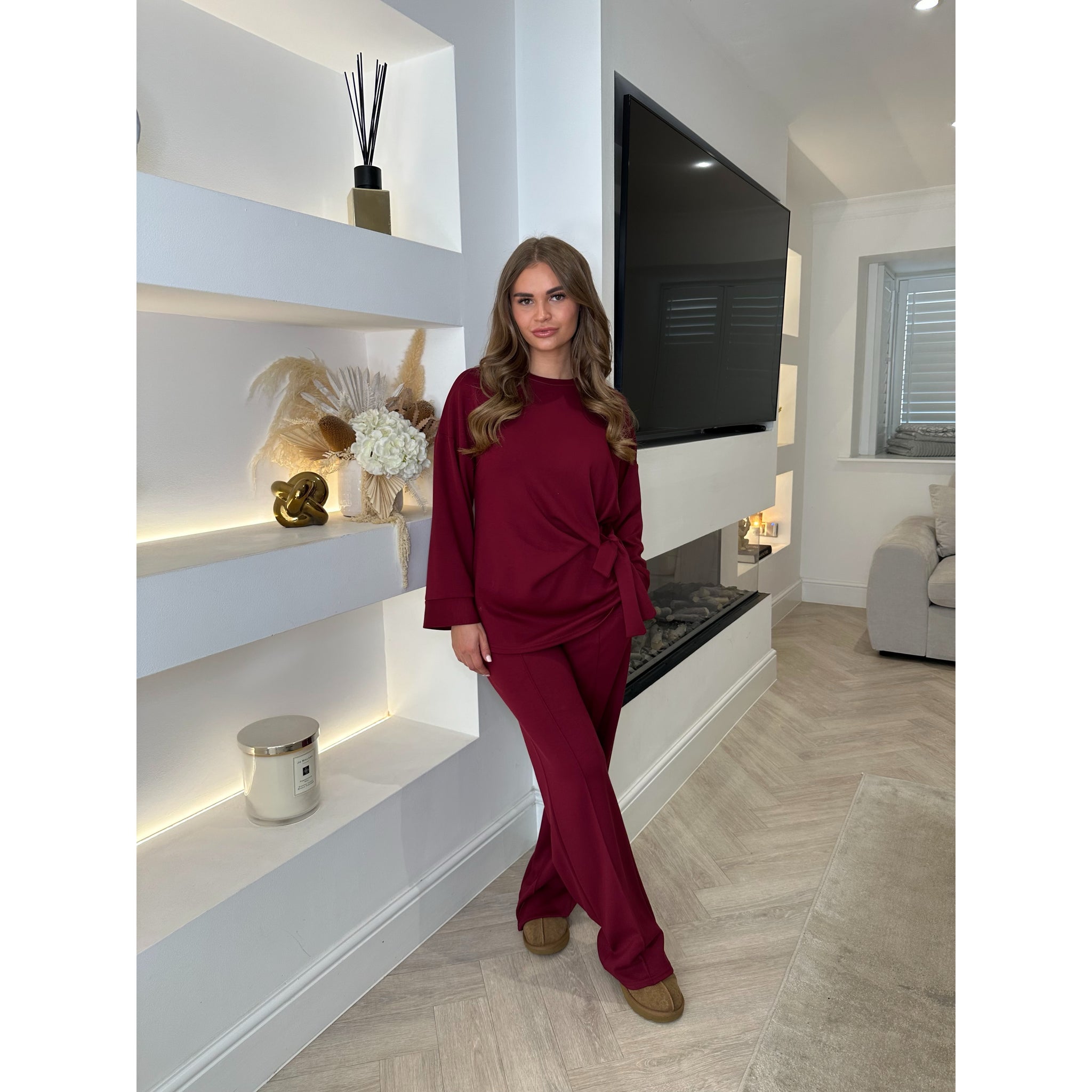 Burgundy Tie Detail Wide Sleeve Lounge Set
